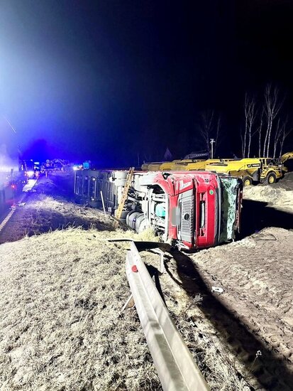Zderzenie trzech ciężarówek. Jedna osoba ranna