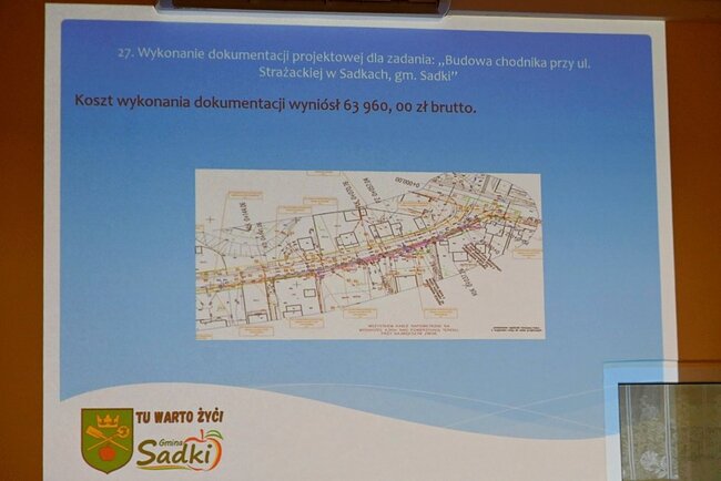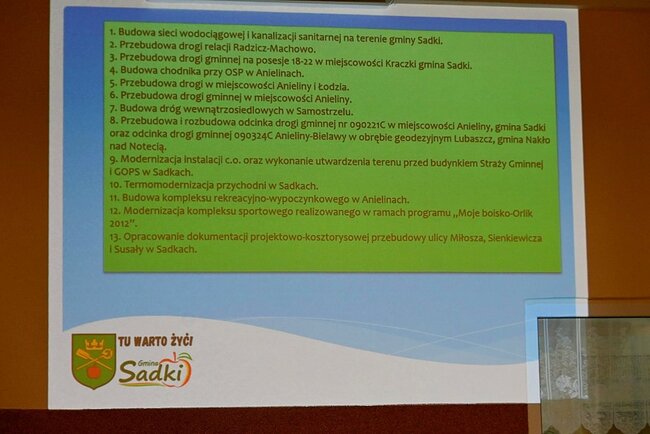 W dalszej części spotkania głos zabrał wójt gminy Sadki Michał Piszczek. Zaprezentował on przygotowaną prezentację przedstawiającą inwestycje zrealizowane w minionym roku oraz przedsięwzięcia planowane na 2026 rok. Wystąpienie stało się punktem wyjścia do dyskusji o rozwoju gminy i oczekiwaniach mieszkańców, których reakcja była natychmiastowa - zwrócenie uwagi na brak inwestycji w samym Śmielinie.