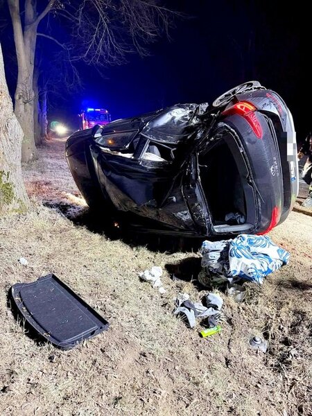 Na miejsce zadysponowano dwa zastępy z Jednostki Ratowniczo-Gaśniczej w Sępólnie Krajeńskim. Na miejscu okazało się, że doszło do wypadku z udziałem samochodu osobowego marki VW. Z niewyjaśnionych przyczyn pojazd zjechał z drogi i uderzył w drzewo. Pojazdem podróżował 50-letni mężczyzna, który został przetransportowany do szpitala. Na czas działań droga była zablokowana. Przyczyny wypadku bada policja.